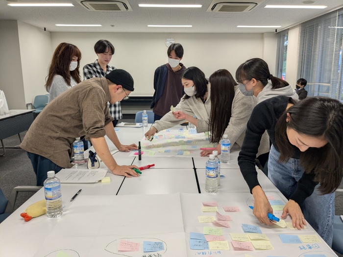 参加学生は、各学科専攻、大学院各専攻、および学生会執行部からの代表学生、計8名です。当日はKJ法を用いて学生たちが以下の項目について良い点や課題を述べ、和やかな話し合いができました。