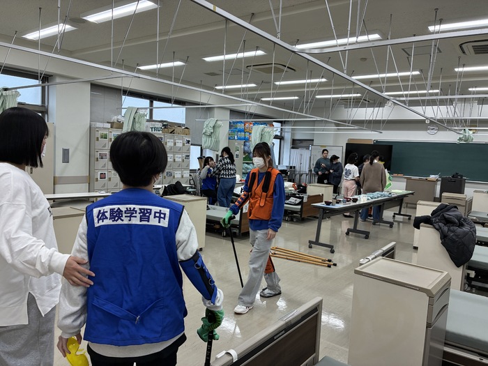 介護福祉専攻の1年生が「高齢者疑似体験」と「片麻痺疑似体験」を行いました。