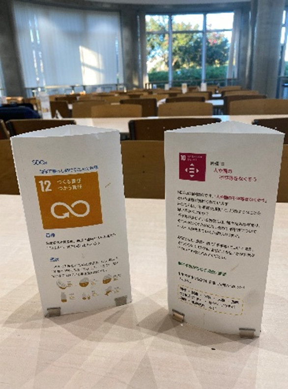 食堂に置かれたさまざまなSDGsポップアップ